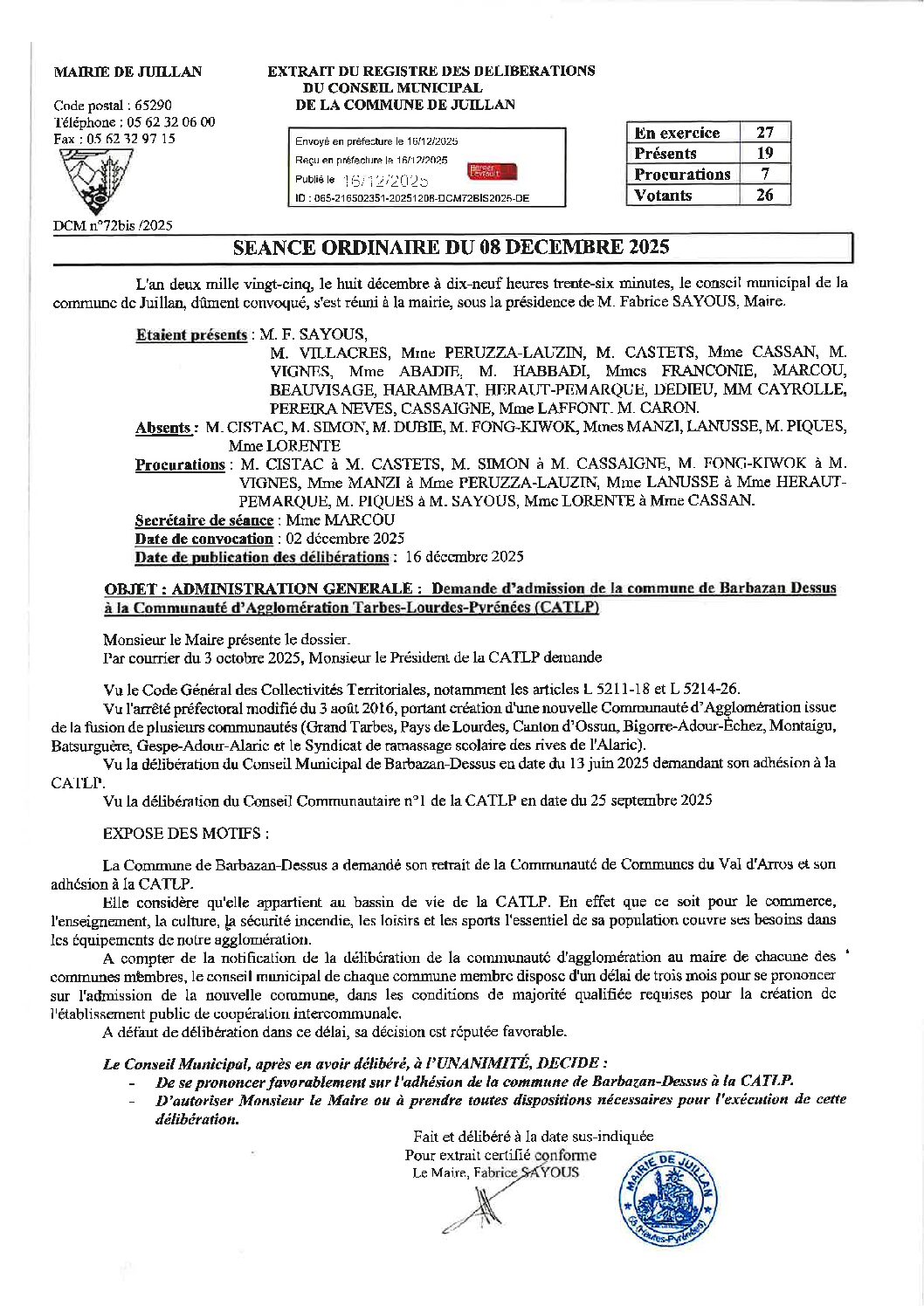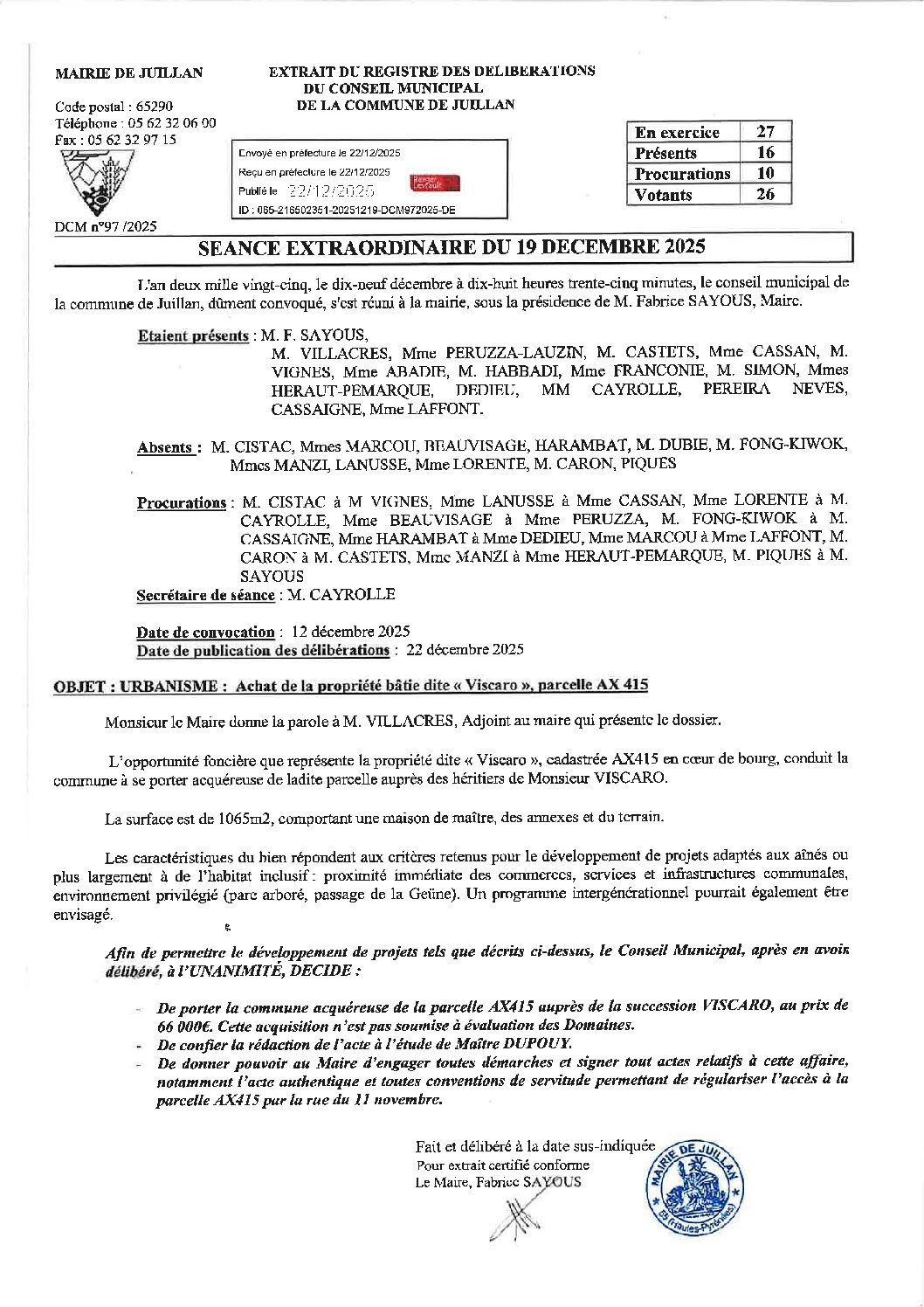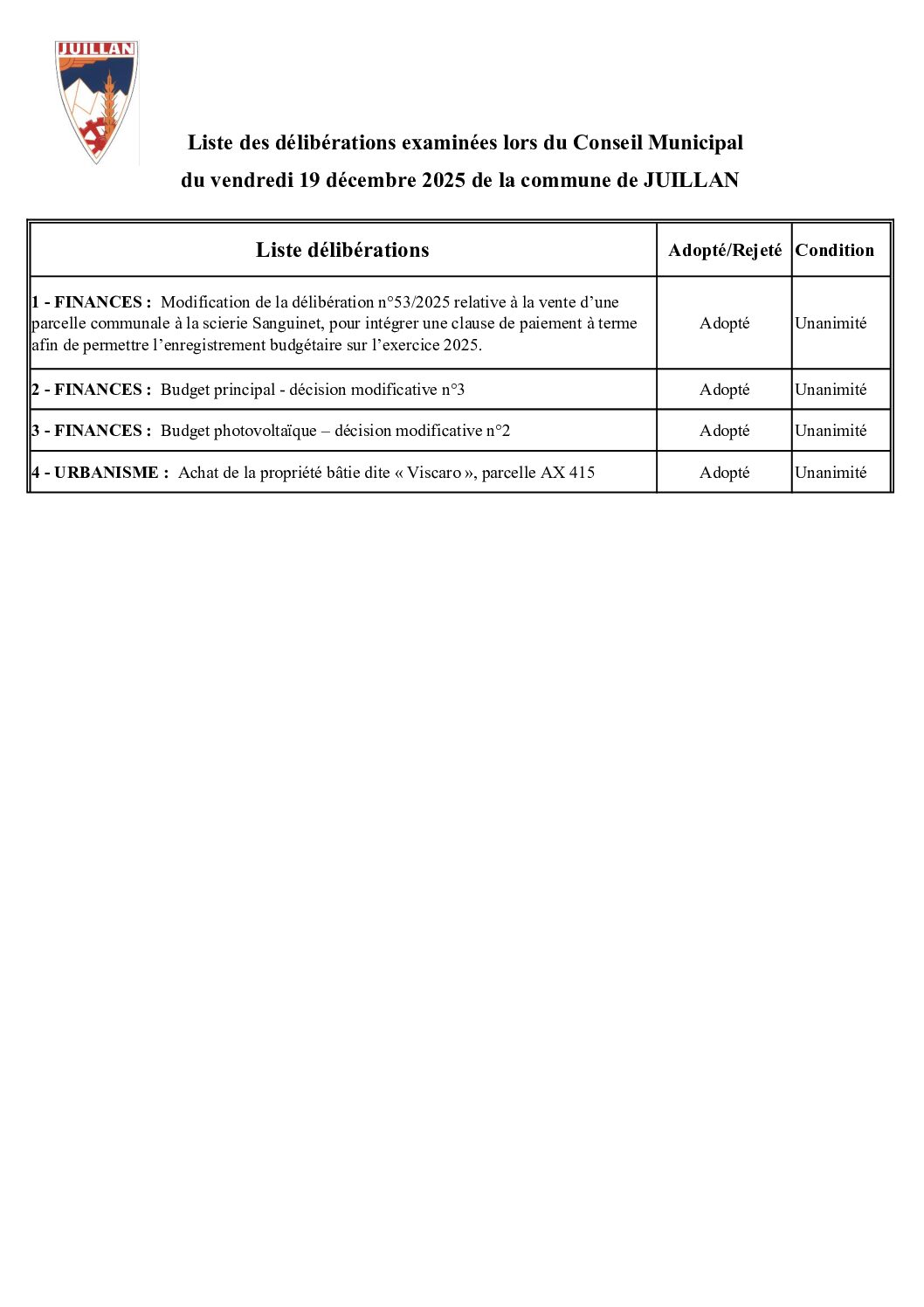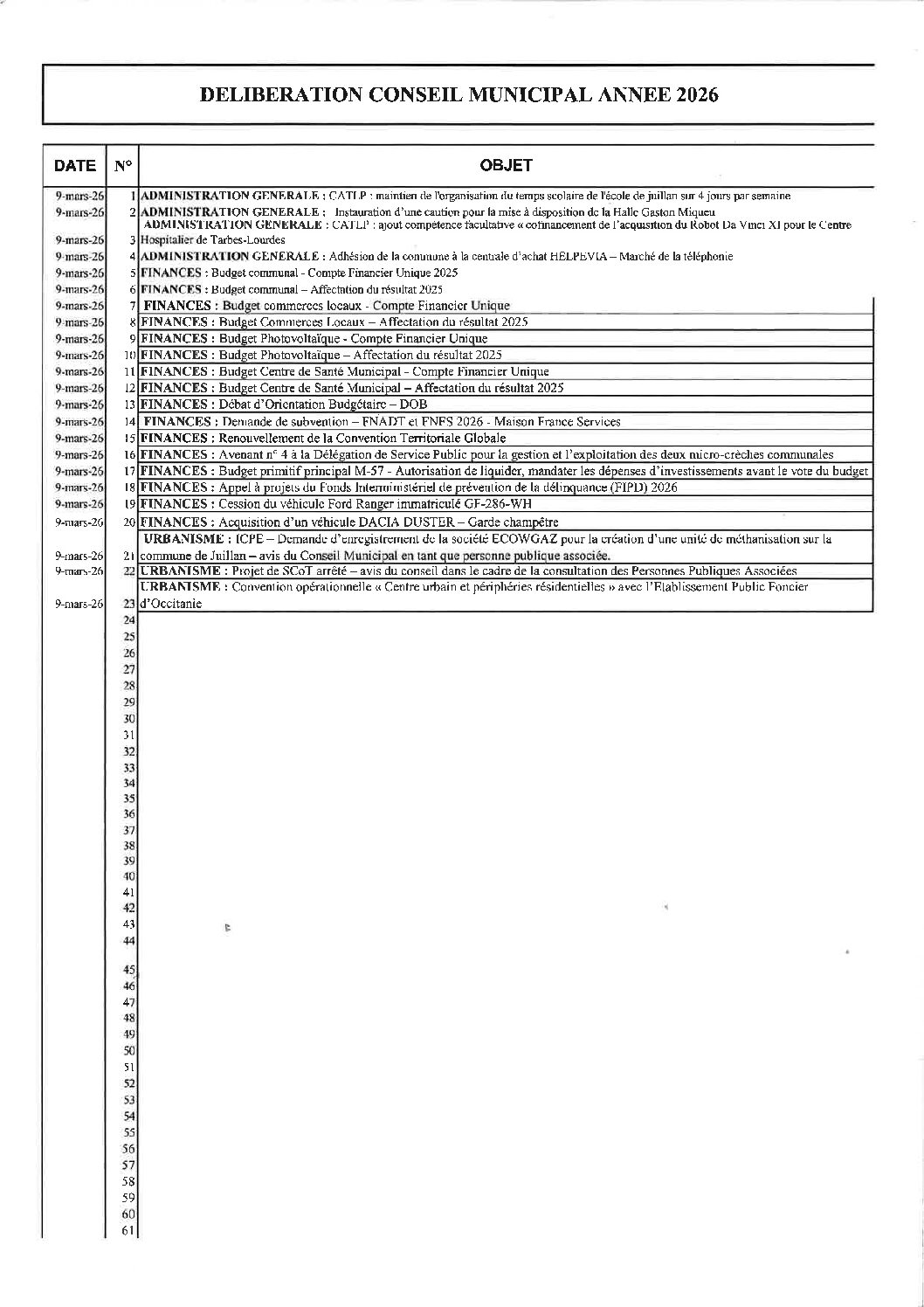 Liste des Décisions Centre Communal d’Action Sociale CCAS Marchés Publics Bulletins municipaux Comptes rendus des Conseils Municipaux Liste délibérations